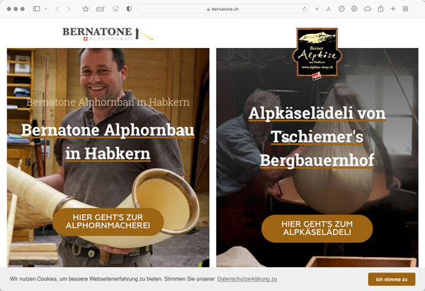 Alphorbauwerkstatt in Habkern. Man kann ein Alphorn bauern lassen, kaufen, mieten, leasen oder sein altes, nicht mehr gebrauchtes Alphorn, verkaufen. Dazu gibts eine Menge Alphornzubehör. Die Alphornwerkstatt kann auch besichtigt werden.