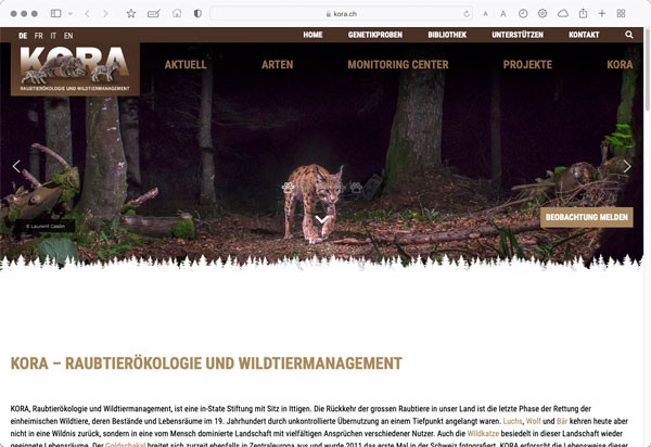 In den Koordinierten Forschungsprojekten zur Erhaltung und zum Management der Raubtiere in der Schweiz (KORA) sind Forschungsprojekte zusammengefasst, die sich mit den Raubtieren in der Kulturlandschaft und mit der Koexistenz dieser Tiere mit dem Menschen beschäftigen.