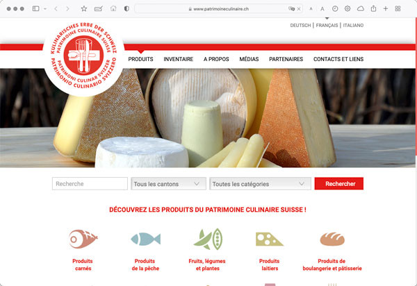 Das Inventar enthält das Wissen über die traditionellen Nahrungsmittel in der Schweiz. Erklärt werden die Produkte nach Herkunft, Herstellung, wirtschaftlicher Bedeutung und manchmal mit einer Anekdote garniert. Beispiele aus der Datenbank mit über 400 Eintragungen: Bätziwasser, Gnagi, Hölloch-Chräpfli, Zürcher Murre, Ramswurst, Magenbrot, Alpkäse usw.