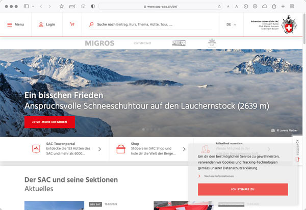 Dreisprachig erhält man einen Einblick in die alpinistische Zeitschrift «Die Alpen» oder kann Bücher aus dem SAC-Verlag bestellen. Kernstück ist eine detaillierte Auflistung aller Hütten, Links zu Bergführer und Bergschulen. Wer dann noch nicht genug hat, wird mit einem Mausklick Mitglied.