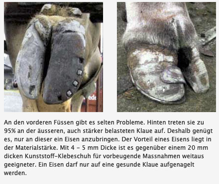 Da wir in unserem Betrieb pro Jahr noch 1800 Kühe ausschneiden, ergibt sich, zusammen mit dem Wissen rund um den Hufbeschlag, eine sehr grosse Erfahrung was die Klauenpflege betrifft. So wurde ich einmal von einem jungen Bauern angefragt, ob es nicht möglich wäre, seine Kuh, welche im Sommer auf die Alp gehe, zu beschlagen.