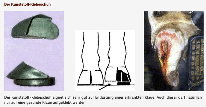 Eine Woche vor dem Alpauftrieb haben wir dieser Kuh an beiden Hinterbeinen die äussere Klaue beschlagen. Der Alphirte war am Anfang eher skeptisch, doch im Verlaufe des Sommers meinte er, schön wäre es, wenn alle Kühe beschlagen wären.