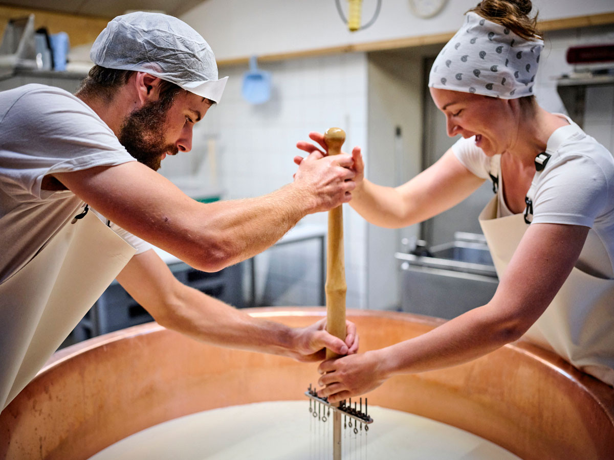 Die 3200 Milchkühe geben knapp 3000 Tonnen Milch, davon verarbeiten die Sennen 180 Tonnen zu Alpkäse, gut 1000 Tonnen Milch liefern sie an Molkereien. Um all die Arbeit bewältigen zu können, braucht es 230 Älplerinnen und Älpler.