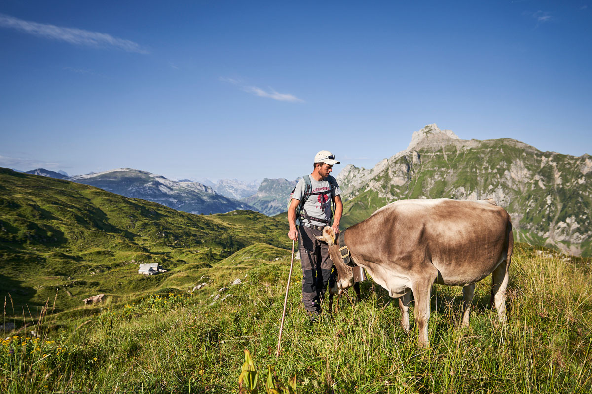 Was zudem augenfällig ist: hier gehen solide, robuste Tiere z’Alp und viele mit «Horä». Die ruppige, ungehobelte Berglandschaft der Glarner Alpen verlangt nach trittsicheren Tieren, und im Glarnerland ist das Original Braunvieh, quasi die schweizerische Urkuh, so verbreitet wie kaum woanders in der Schweiz.