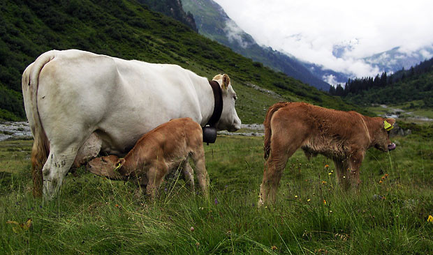 Wer beim Stichwort «Kuh» gleichzeitig an «Milch» denkt, liegt zwar nicht ganz falsch, unterschlägt jedoch ein wesentliches Detail: das Kalb. Denn immer öfter ist die Kuh eine Mutterkuh und die Milch nur für ihr Kalb bestimmt. Dann lautet die logische Verbindung nicht mehr «Kuh – Milch – Käse», sondern «Kuh – Kalb – Fleisch.» Wobei Letzteres besonders gut schmeckt, wenn die Kuh samt Kalb z'Alp war. Reine Mutterkuhalpen sind zwar noch selten, nur sieben Prozent der Bündner Alpbetriebe sind ausschliesslich Mutterkühen mit Nachwuchs vorbehalten. Aber auf beinahe jeder dritten Alp finden sich in der Rinderherde ein paar Mutterkühe, oder neben den 16'000 Milch- und Galtkühen weiden ein paar von den 14'000 Mutterkühen mit ihren Kälbern.