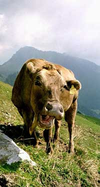 Leider war das Kalb zu gross für dieses Rind und blieb in der Hälfte stecken. Am Nachmittag sah es so aus, dass das Kalb tot und nicht mit eigener Kraft zur Welt gebracht werden konnte. Dazu kam, dass das mittlerweile erschöpfte Rind bei jedem Versuch aufzustehen vom Gewicht des Kalbes weiter ins Bachbeet gezogen wurde. Es drohte abzustürzen! Mit Hilfe eines Helikopters wurde das Rind aus dem Bachbeet geborgen, zur Hütte geflogen und etwas später entfernte der Tierarzt das Kalb. Nach elf Stunden Dauerstress kam ich todmüde nach Hause. Das verletzte Rind, welches nicht mehr aufstehen konnte, pflegte ich während einer Woche vor der Hütte. Seine ersten Gehversuche waren ein dringend notwendiges Erfolgserlebnis für mich, denn neben eingerissenen Zäunen, vermischten Herden, vermissten Jährlingen und sintflutartigen Regenschauern hatte ich während dieser psychisch harten Zeit keine Gelegenheit gehabt durch erfolgreiche, schöne Tätigkeiten meine Batterie zu laden. Es kam soweit, dass ich mir überlegte, wie ich aus diesem Alptraum erwachen könnte. Obwohl mich meine Familie und Freunde mit Briefen, SMS und am Telefon unterstützten, entschloss ich mich nach mehrtägigem Kampf mit meinem inneren Schweinehund den Bauer zu bitten, einen Ersatz für mich zu suchen. Er war wie vor den Kopf gestossen und an diesem Abend führten wir ein längst fälliges Gespräch, in dem ich endlich ein Feedback über meine Leistungen erhielt.